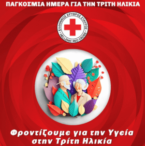 |> Ο Ελληνικός Ερυθρός Σταυρός, στο πλαίσιο εορτασμού της Παγκόσμιας Ημέρας για την Τρίτη Ηλικία (1η Οκτωβρίου), διοργανώνει εκδήλωση ευαισθητοποίησης και ενημέρωσης την Τρίτη 30 Σεπτεμβρίου (9:00 – 13:00) στην πλατεία Συντάγματος με θέμα “Φροντίζουμε για την Υγεία, στην Τρίτη Ηλικία… Περισσότερα