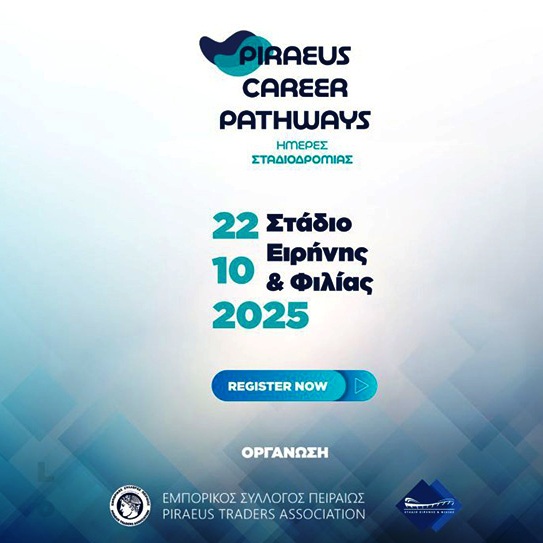 ‘’Piraeus Career Pathways 2025’’: Νέος θεσμός που συνδιοργανώνει ο Εμπορικός Σύλλογος Πειραιώς με το ΣΕΦ την Τετάρτη 22 Οκτωβρίου