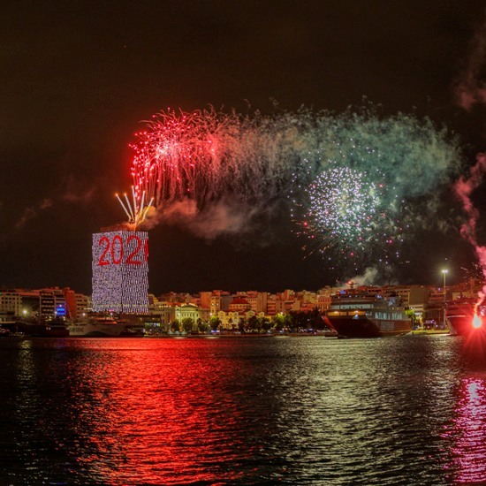 Δεκάδες πολύχρωμα πυροτεχνήματα, βεγγαλικά και εντυπωσιακοί φωτισμοί «έντυσαν» τον ουρανό του πρώτου λιμανιού της χώρας, στέλνοντας μηνύματα δημιουργικότητας, αισιοδοξίας, χαράς και ελπίδας για το νέο έτος, σηματοδοτώντας με τον πιο λαμπερό τρόπο την έναρξή του.