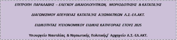 Για την ειδικότητα Υγειονομικού ειδικής κατηγορίας, προερχόμενων από ιδιώτες Οδοντιάτρους και Ψυχολόγους, έτους 2025