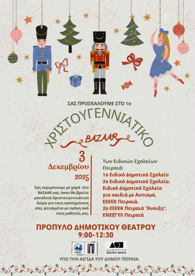 |> Ο Δεκέμβριος στον Πειραιά είναι γεμάτος όμορφες δράσεις, και μία από τις πιο ξεχωριστές είναι το 1ο Χριστουγεννιάτικο Bazaar των Ειδικών Σχολείων του Δήμου Πειραιά.