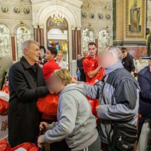 |> Περισσότερα από 5.000 δέματα με τρόφιμα και είδη πρώτης ανάγκης διανεμήθηκαν σε Πειραιώτες που έχουν ανάγκη στον Ιερό Ναό Αγίου Νικολάου με τη συμμετοχή του Σεβασμιωτάτου Μητροπολίτου Πειραιώς, κ. Σεραφείμ, του δημάρχου Πειραιά Γιάννη Μώραλη και του προέδρου και διευθύνοντα συμβούλου του … Περισσότερα